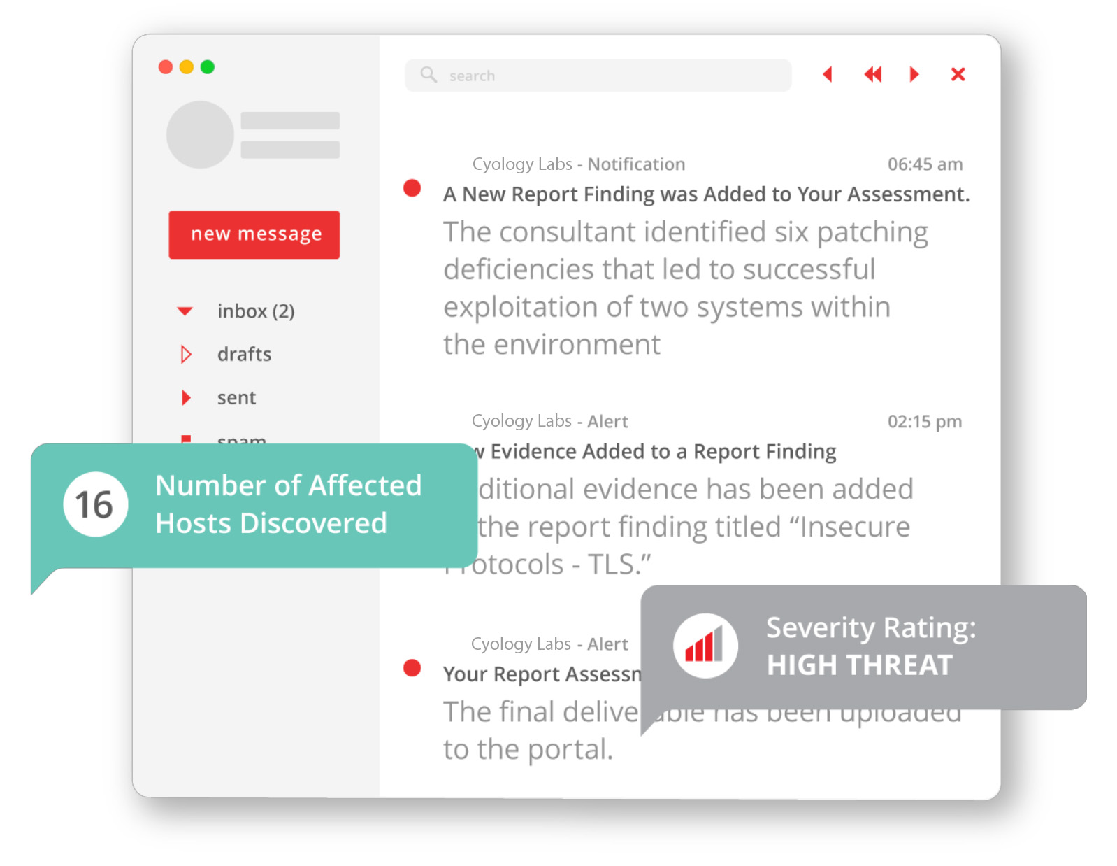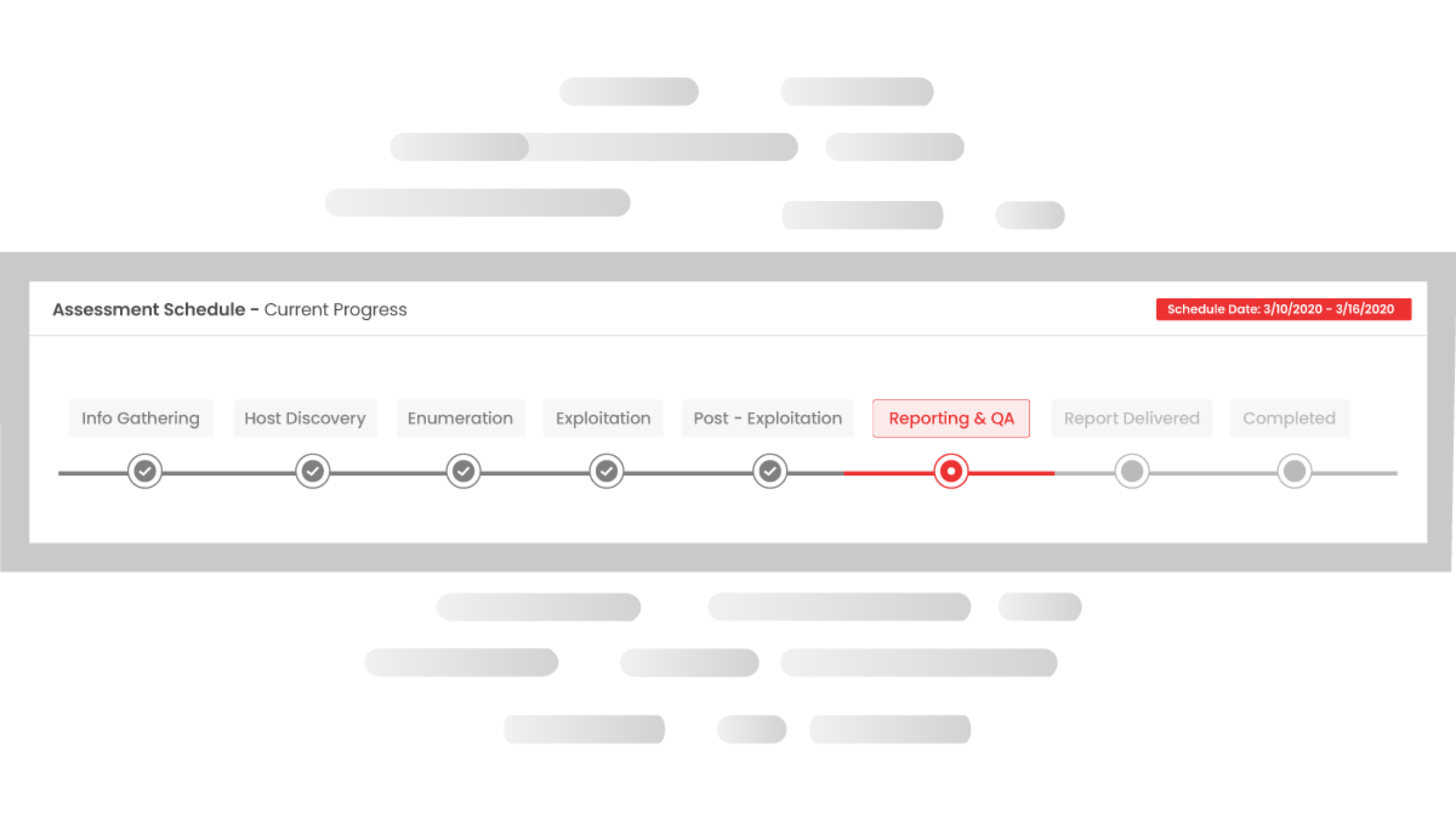 Our progress tracker ensure that your IT team knows exactly what the progress is of the engagement, when it’s expected to be completed, as well as any preliminary findings that we’ve identified. Your team will always know when and what activities are taking place. Each time a phase is completed, you will receive an email notification.